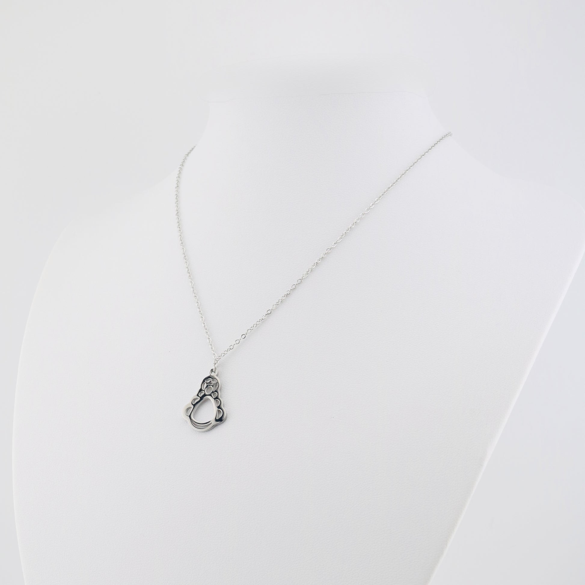 Collar en acero inoxidable con colgante en silueta de la Virgen del Rocío. Con una longitud aproximada de 45 cm, es una joya elegante y discreta, perfecta para llevar siempre contigo tu fe.
