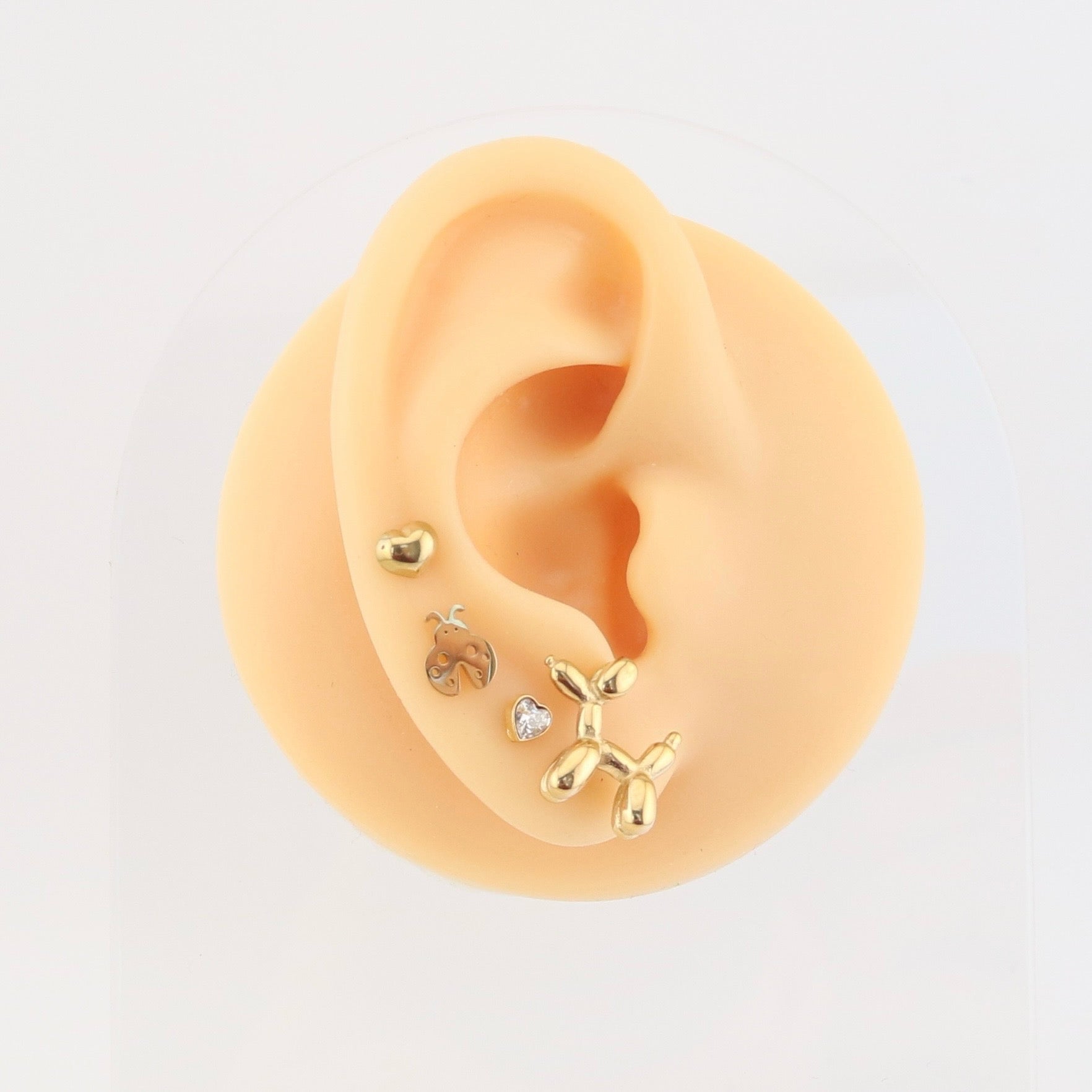 Pendiente pequeño dorado fabricado en acero inoxidable hipoalergénico con forma de corazón. Lleva cierre trasero plano para poder dormir con él cómodamente. Se vende por unidad.