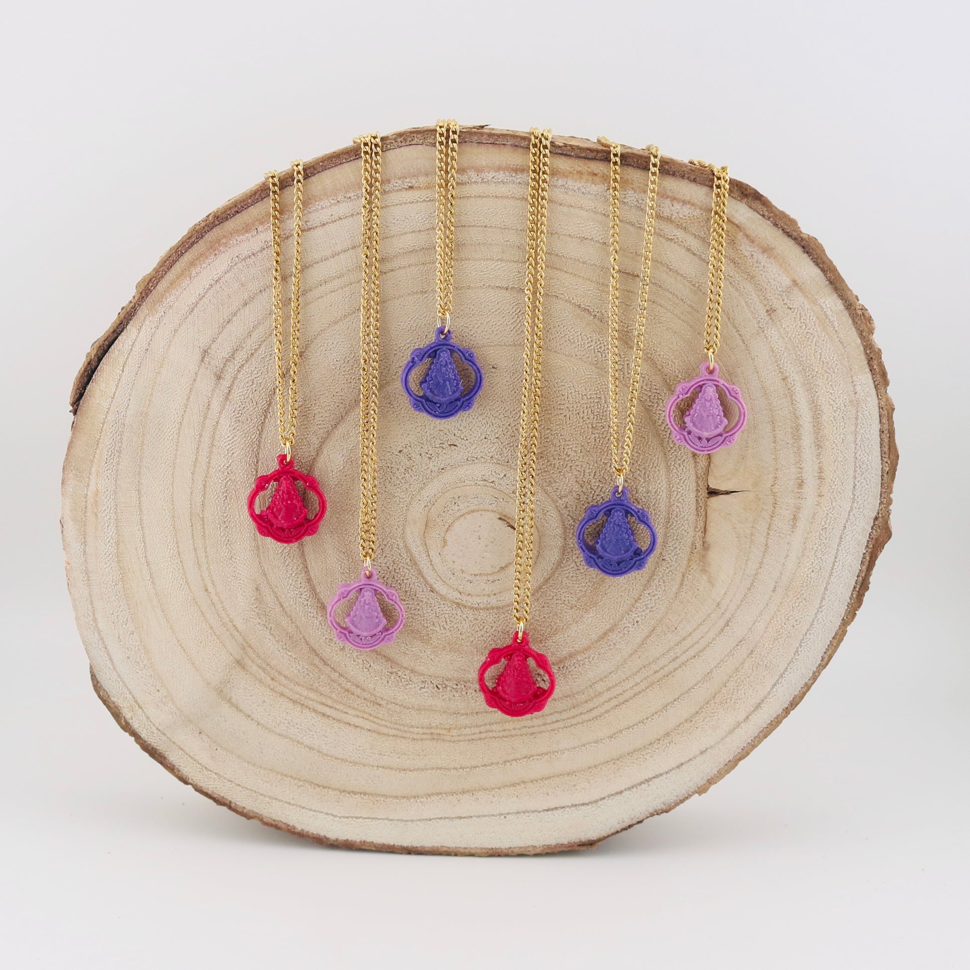 Cadena dorada de acero inoxidable, acompañada de una medalla de la Virgen del Rocío elaborada en resina, que aporta un acabado especial y ligero. Largo aproximado de 45 cm, un collar versátil y lleno de significado.