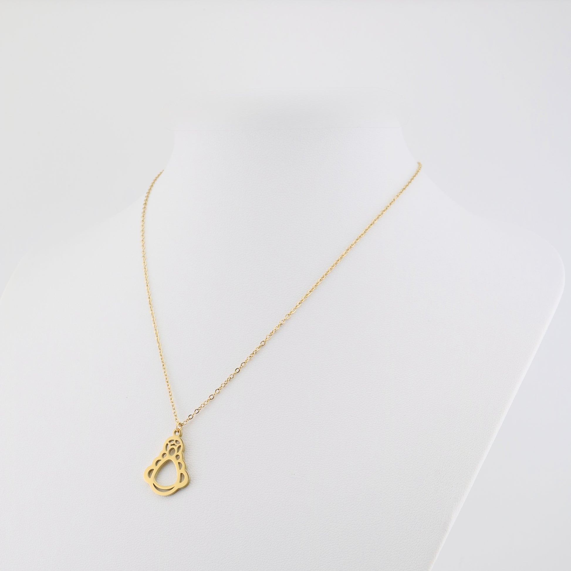 Collar en acero inoxidable con colgante en silueta de la Virgen del Rocío. Con una longitud aproximada de 45 cm, es una joya elegante y discreta, perfecta para llevar siempre contigo tu fe.