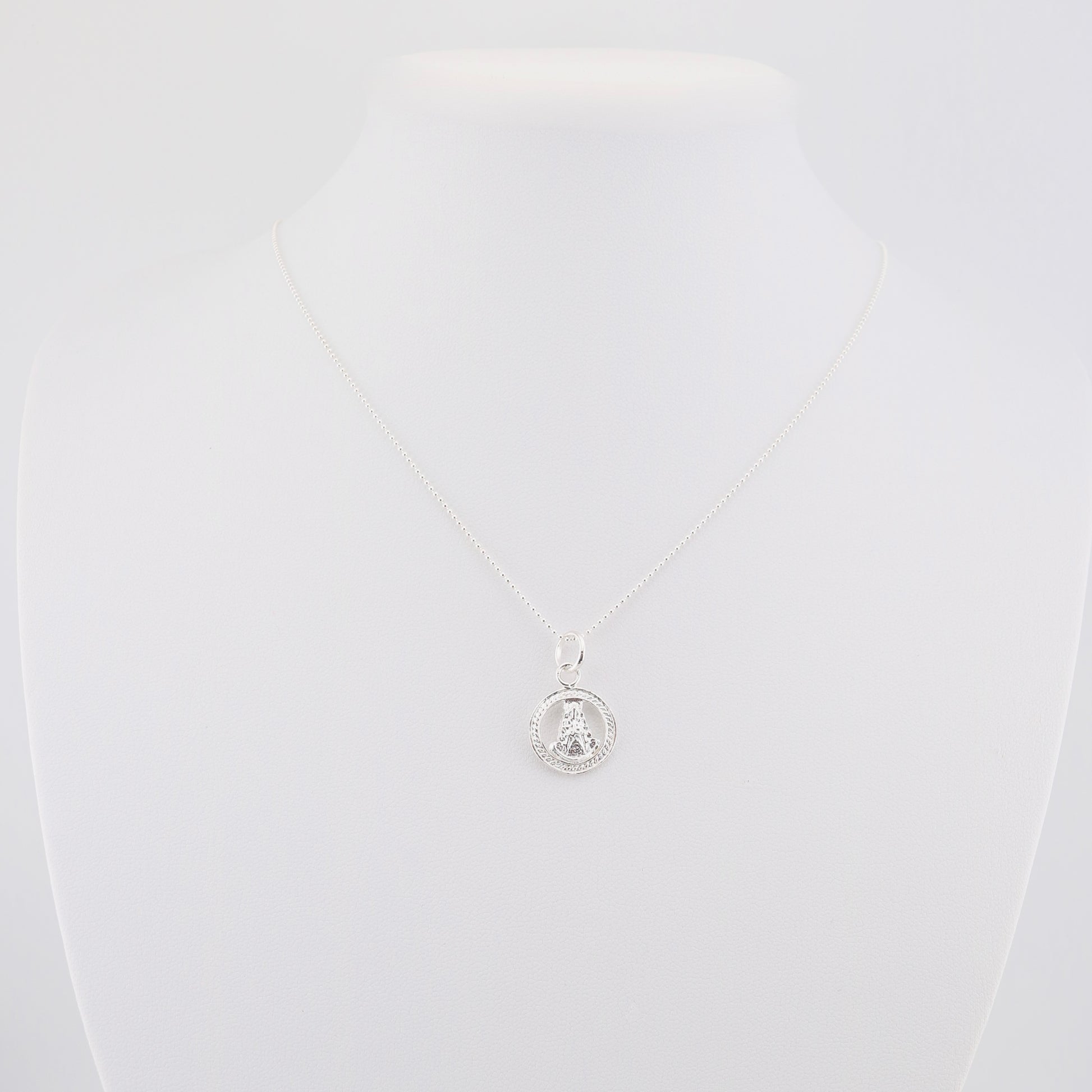 Collar de cadenita con medalla de la virgen del Rocío. Lleva cierre de langosta y la medida de la cadena es de 45 cms. Fabricado en plata de primera Ley.